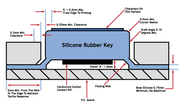 Base Membrane Specs: The web is typically 0.5 mm thick, though this varies based on the silicone hardness (durometer) and the overall layout requirements.